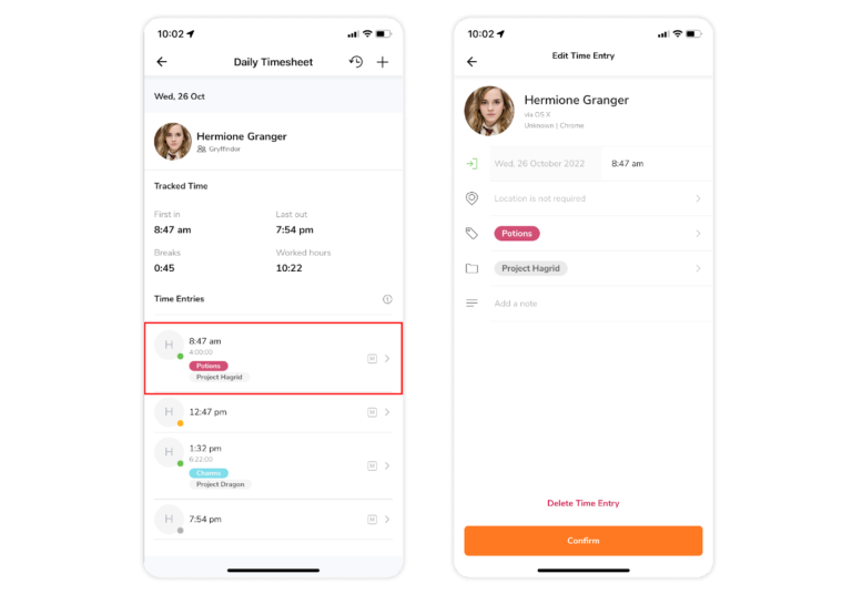 - انقر على تأكيد “Confirm” لتسجيل الوقت.