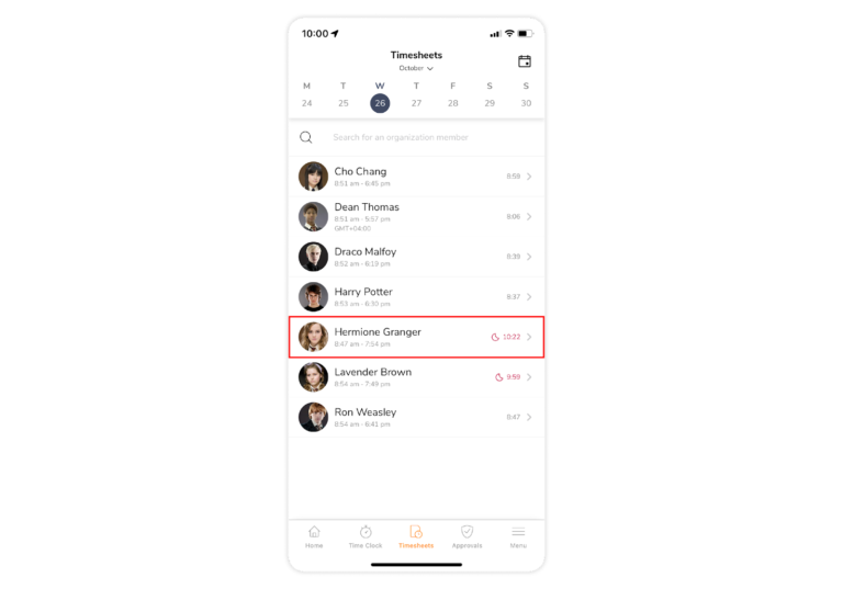 - اذهب إلى سجلات الدوام “Timesheets“.