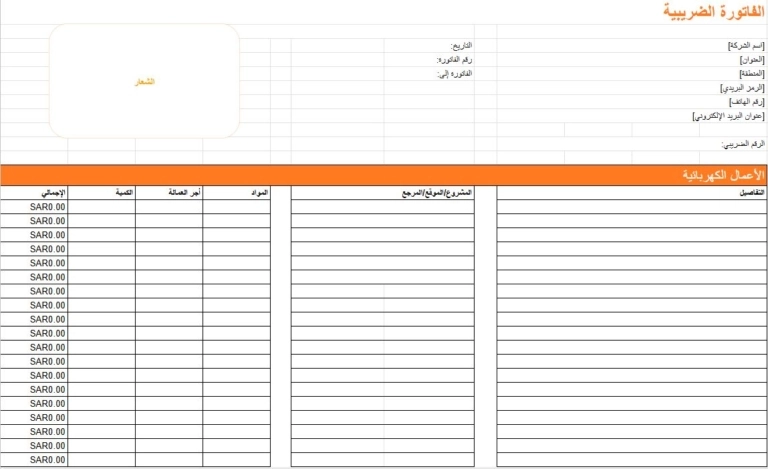 نموذج فاتورة مقاولة من الباطن