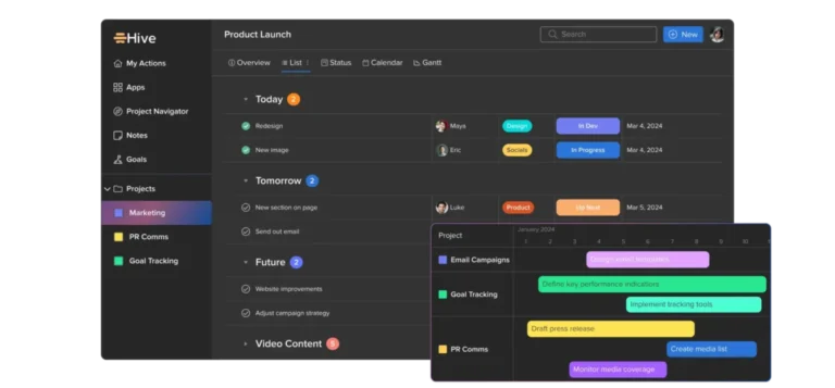 يعمل هايف (Hive) كنقطة التقاء مركزية لفريقك ومشاريعك؛ فهو يجمع كل شيء في مكان واحد: المهام، والمشاريع، والحملات، حتى تتمكن من تتبع وإدارة وتنفيذ مبادراتك برؤية كاملة وشاملة لمؤسستك بأكملها. كما يمكنك تنظيم مشاريع منفصلة أو إنشاء مشروع رئيسي يضم مشاريع فرعية مرتبطة به.