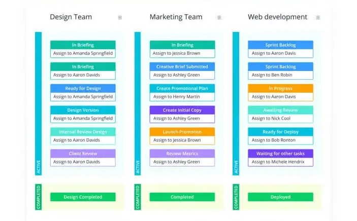 يمكنك إنشاء سير عمل مُخصَّصة للحفاظ على تناغم فريقك. إنه سهل التنفيذ للغاية، وتجعله ميزاته سهلة الاستخدام فعالًا. بالإضافة إلى ذلك، يمكنك عرض جداول مشاريعك وتعيين الاعتمادات على الغير في الوقت الفعلي – فقط شد واترك! بالإضافة إلى ذلك، يُعد إجراء التعديلات أمرًا يسيرًا للحفاظ على سير الجميع على المسار الصحيح وتلبية تلك المتطلبات المتغيرة.