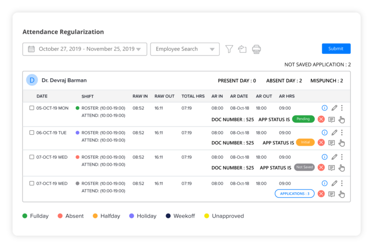 Managers can easily create and manage complex shifts, weekly offs, and rotational rosters, which is especially useful for manufacturing plants, retail outlets, and distributed teams.