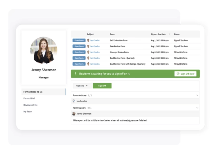 Teams can quickly set up review cycles, feedback forms, and goal timelines without a steep learning curve because of its clean and user-friendly interface.