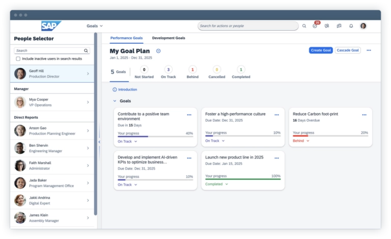 As part of the broader SAP SuccessFactors suite, the Performance & Goals module focuses on aligning individual employee goals with company objectives while supporting formal, process-driven performance evaluations.