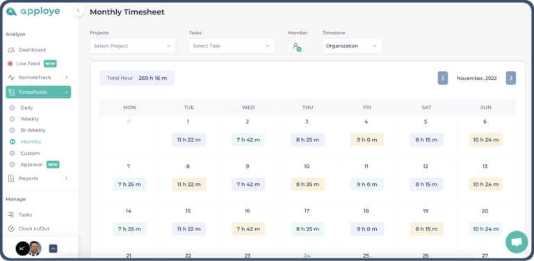 Apploye also includes helpful tools like task-level timers, project-based tracking, and reporting, making it a full package for managing time and performance.