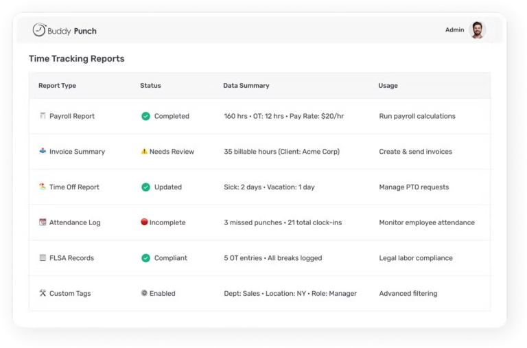 Managers can use Buddy Punch to quickly see who’s working, late, or absent, which is especially helpful for big or remote teams.