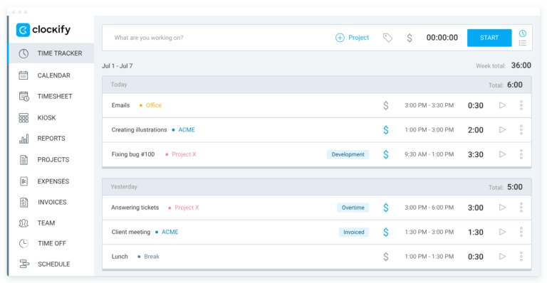You can start tracking time and attendance with a few clicks on web, mobile, tablet, kiosk, or desktop, and have everything synced automatically to timesheets.
