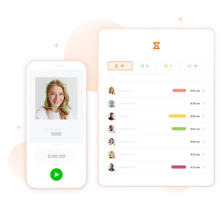 Proměňte svůj telefon nebo tablet ve sdílený časový kiosek. Pomocí zrychleného režimu můžete automaticky zaznamenávat docházku členů týmu, když se postaví před kiosek. Díky rozpoznávání obličeje můžete s naším kioskem pro docházku eliminovat fronty a neoprávněné zaznamenávání docházky.