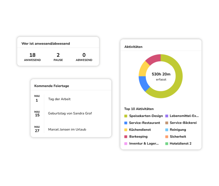 Diese Systeme helfen dir dabei, zu verstehen, wie deine Mitarbeiter ihre Zeit bei der Arbeit verbringen, und umfassen in der Regel Funktionen wie die Verwaltung von Stundenzetteln, die Erstellung von Berichten und die Integration mit Lohnabrechnungssystemen.