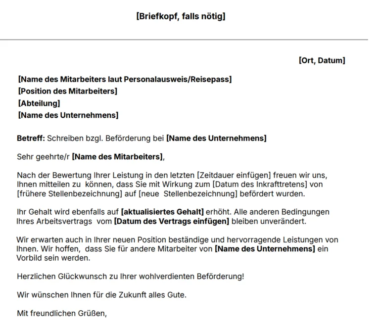 Vorlage für ein Beförderungs-schreiben