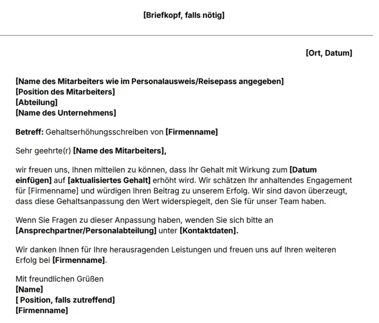 Vorlage für eine Gehaltserhöhung