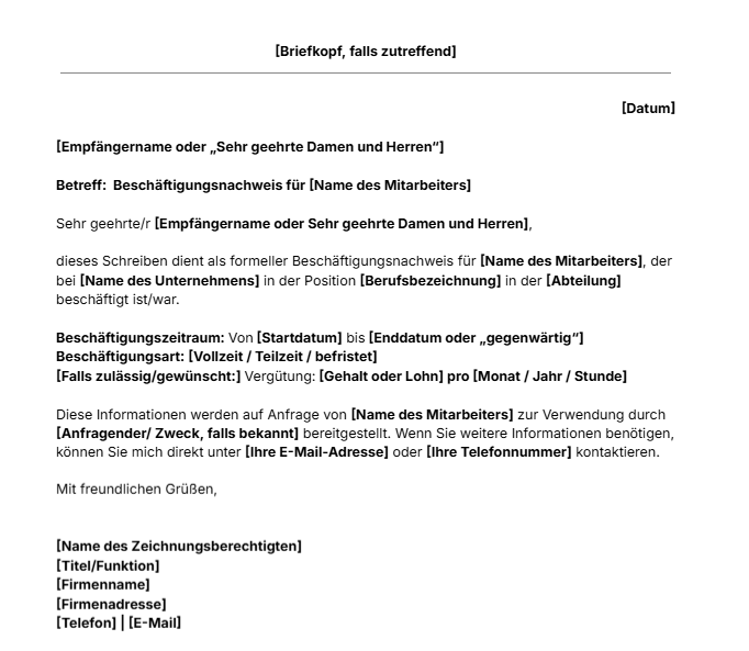 Kostenlose Vorlage für einen Beschäftigungsnachweise. Jetzt herunterladen.