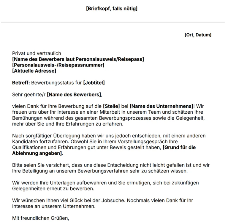 Kostenloser Musterbrief für ein Absageschreiben. Jetzt herunterladen.