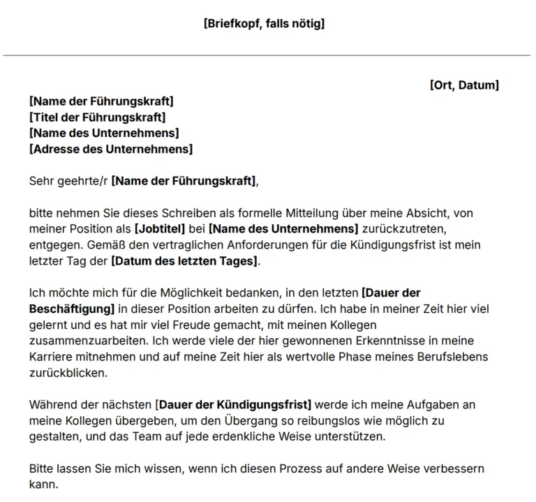 Musterbrief für ein Rücktrittsschreiben. Jetzt kostenlos herunterladen.