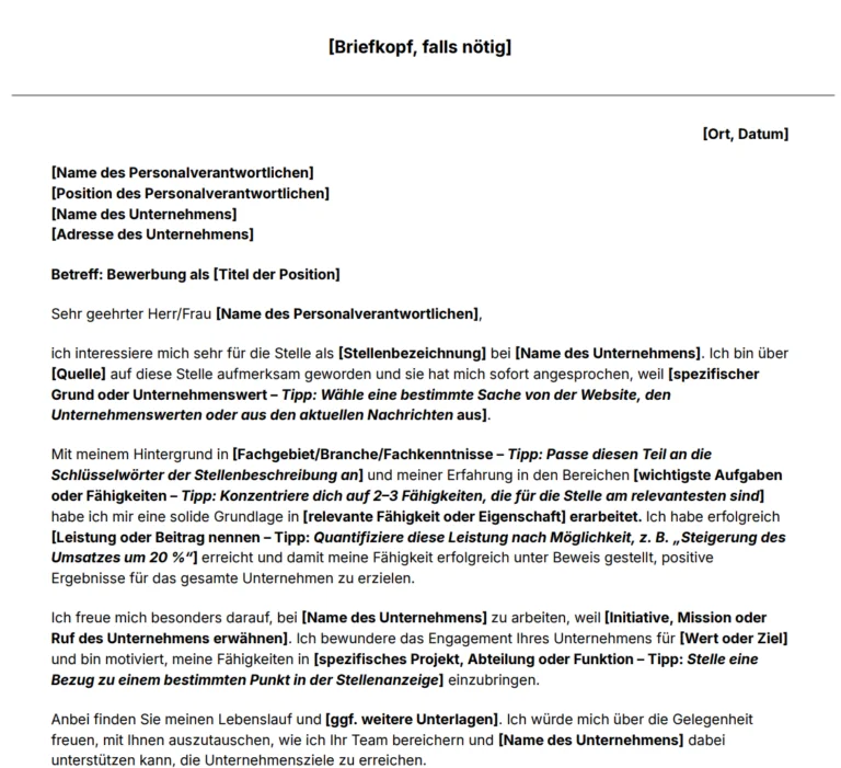 Vorlage für ein Anschreiben. Jetzt herunterladen.