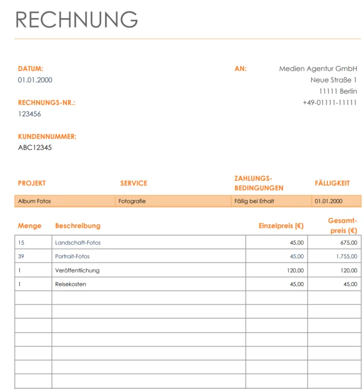 Rechnungsvorlage für Freelancer. Jetzt herunterladen.
