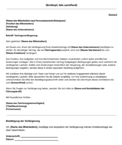 Vorlage für ein Schreiben zur Vertragsverlängerung