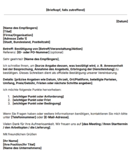 Vorlage für ein Bestätigungsschreiben