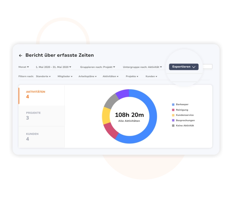 Unsere Plattform ermöglicht es dir, rohe Arbeitszeitdaten in aussagekräftige Erkenntnisse umzuwandeln, damit du datengesteuerte Entscheidungen treffen kannst. Erstelle mit nur wenigen Klicks umfassende Berichte und exportiere sie als XLS oder CSV.