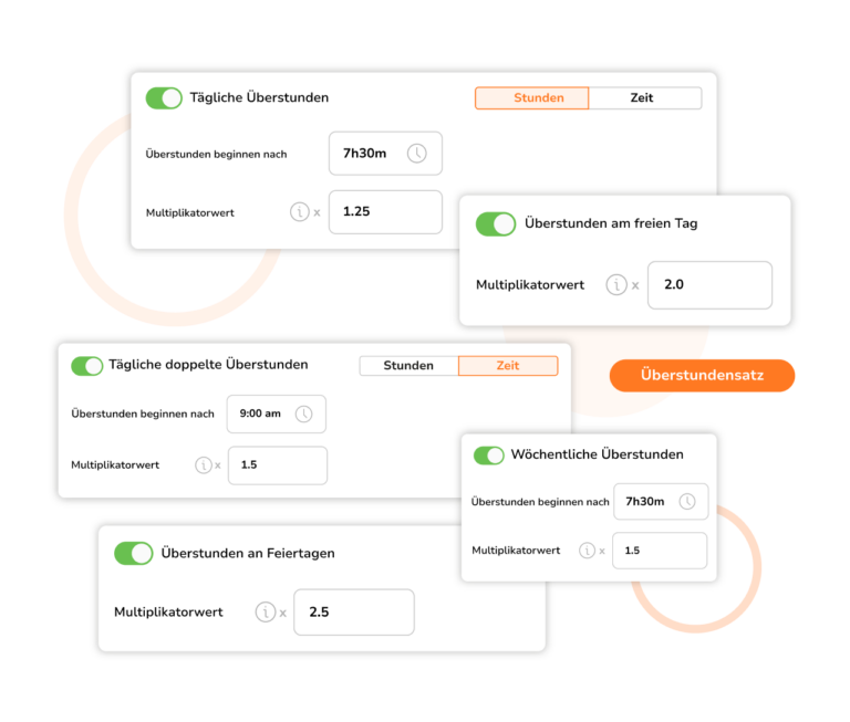 Lege eigene Regeln für Pausen und Überstunden fest. Indem du Pausen und Überstunden im Auge behältst, kannst du erkennen, wann die Arbeitsbelastung steigt, unerwünschte Überstunden vermeiden und sicherstellen, dass jeder die Pausen bekommt, die er braucht, um produktiv zu bleiben.