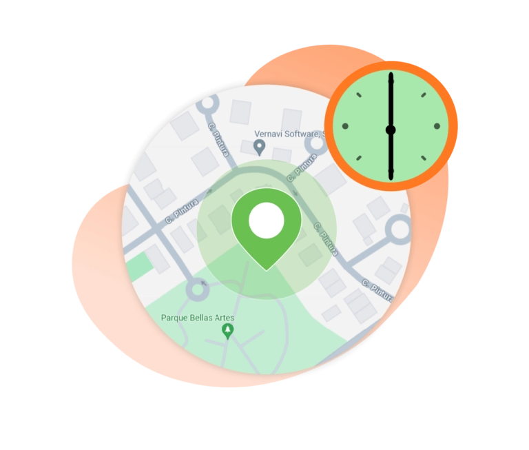 Asistencia con geovallasCrea geovallas alrededor de lugares clave, como tu oficina, las instalaciones de tus clientes o las zonas de tus proyectos. Estableciendo estos perímetros virtuales, podrás asegurarte de que tu personal sólo fiche cuando esté dentro de las zonas autorizadas. Y si alguien intenta fichar desde fuera de la zona designada, será bloqueado hasta que vuelva a estar donde debe.
