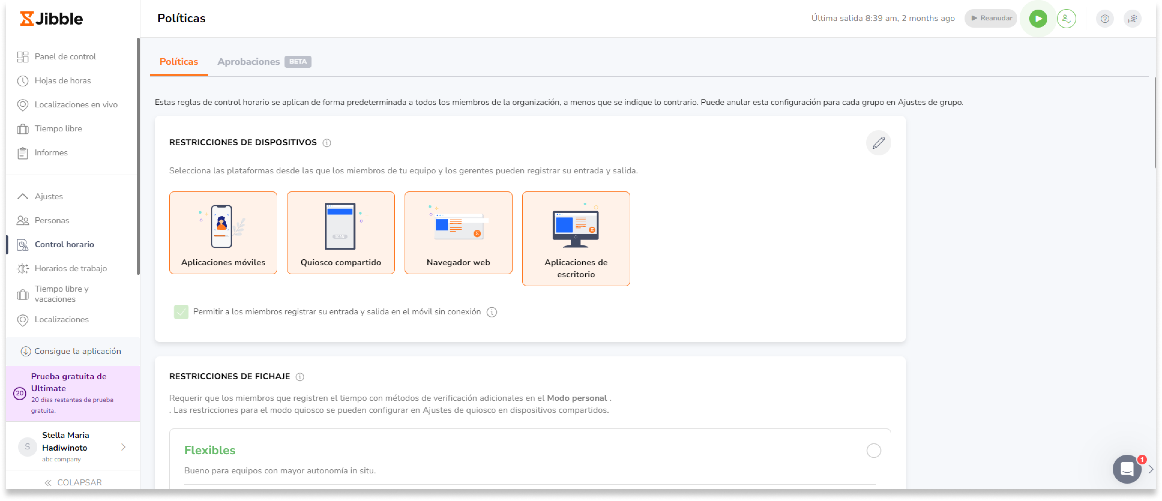 - Si desactivas estas opciones, los miembros de tu equipo podrán fichar en cualquier momento sin restricciones.
