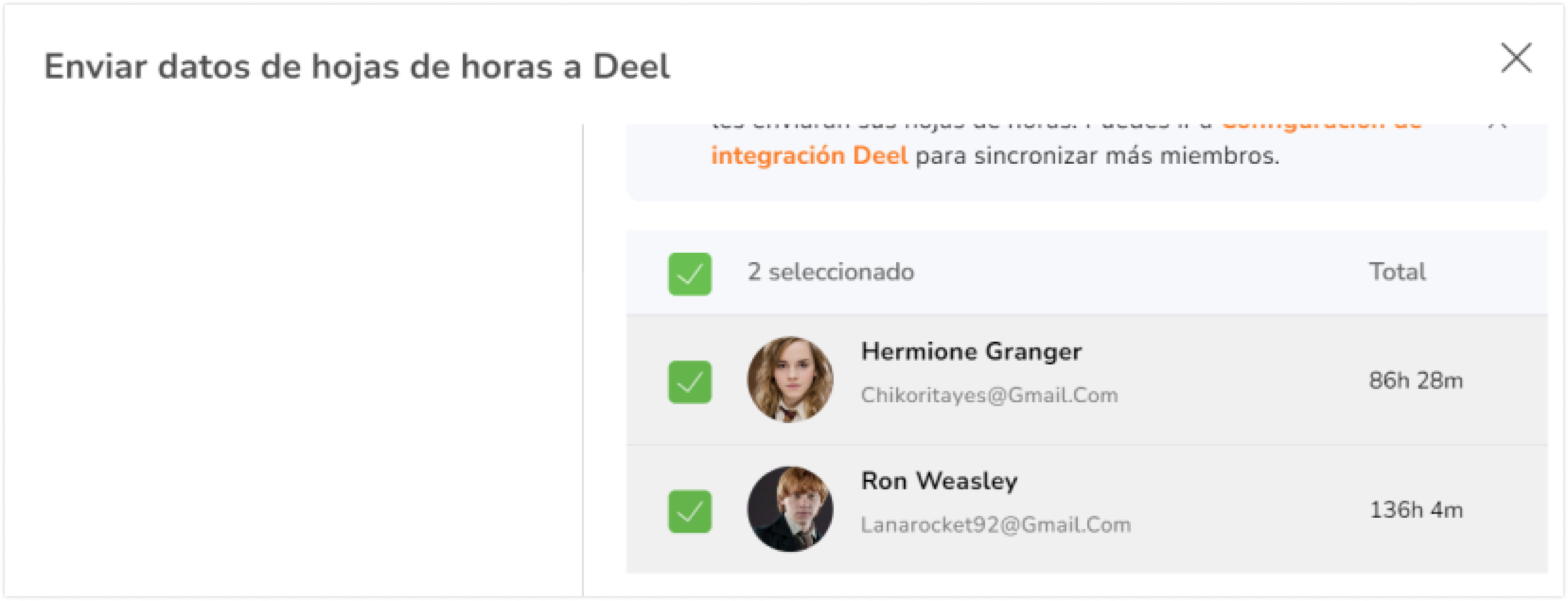 Pasos para enviar los datos de la hoja de horas a Deel: