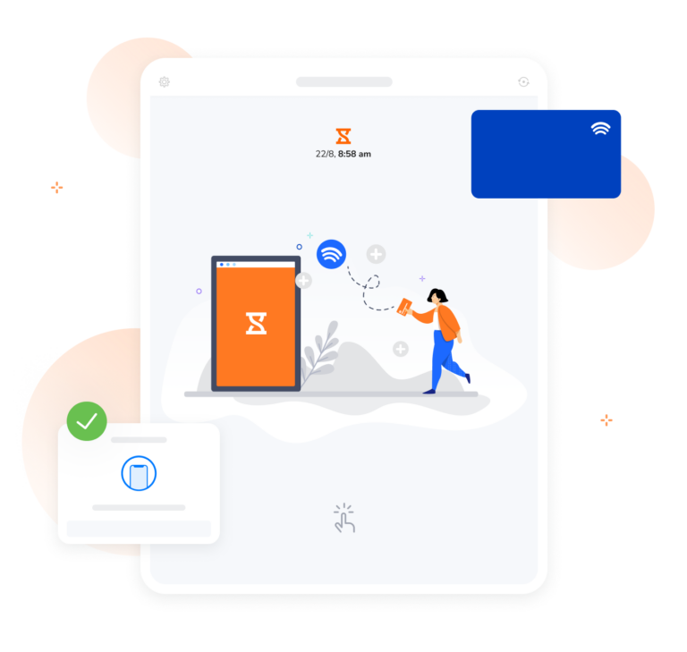 La tecnología RFID se activa cuando acercas la etiqueta al software de control de asistencia RFID de Jibble incluso cuando no tienes internet. Nuestra tecnología avanzada recopila todos los datos de tiempo y se sincroniza cuando el dispositivo vuelve a conectarse.