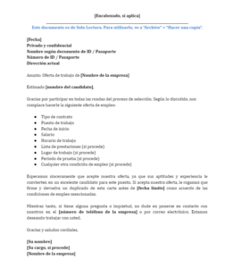 Plantilla de carta de oferta de empleo
