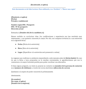 Plantilla de carta de invitación a una entrevista 2025