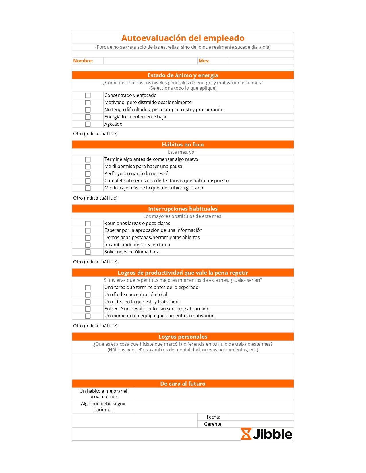 Plantilla gratuita de autoevaluación para empleados de Jibble