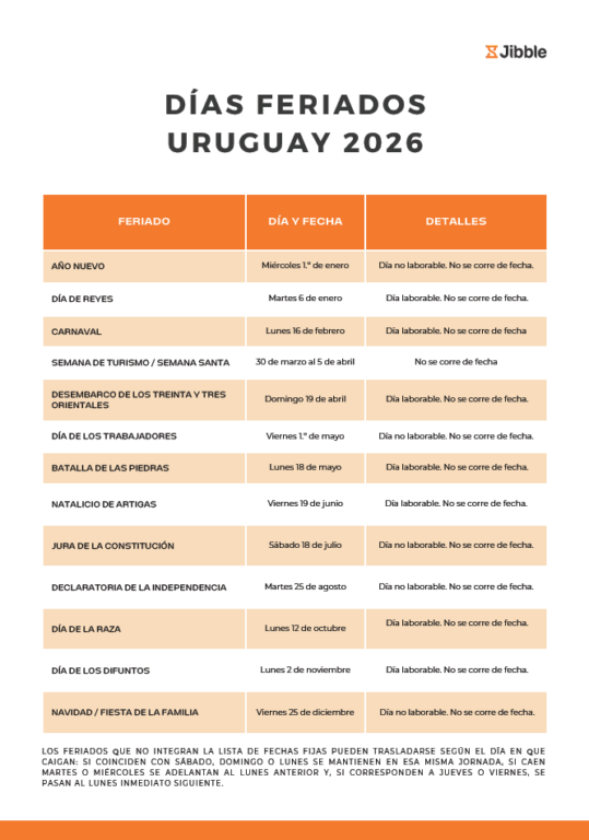 Descubre los días feriados en Uruguay en 2026. ¡Descarga el calendario!