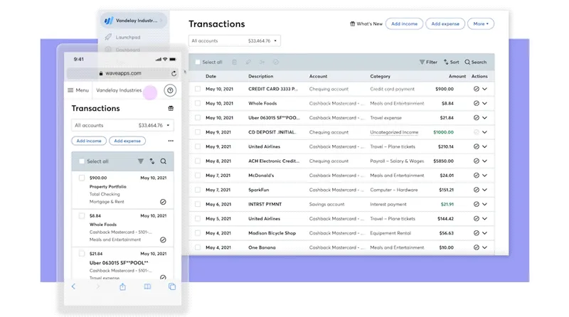 La función de contabilidad de doble entrada de Wave registra cada transacción financiera en dos cuentas, garantizando que el total de débitos sea igual al total de créditos.