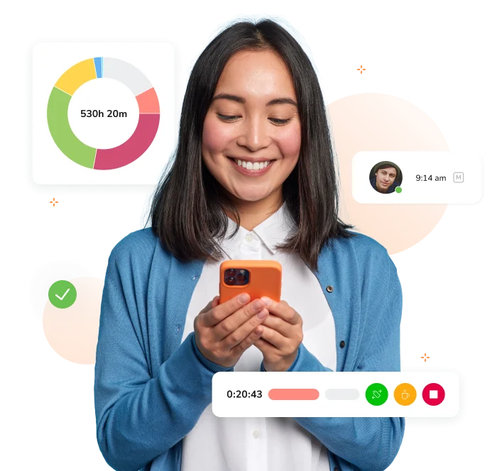 Il vous suffit de démarrer le minuteur, et soyez assuré que votre temps sera enregistré avec précision. Téléchargez l’extension Chrome pour pointer en début et fin de travail depuis n’importe quel onglet, et activez les intégrations avec MS Teams et Slack pour un enregistrement parfait du temps pour toute l’équipe.