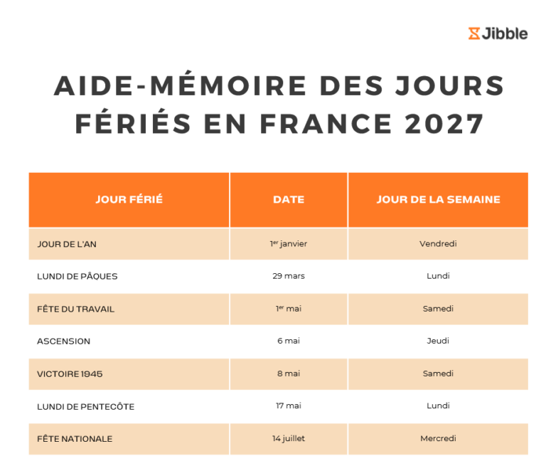Aide-mémoire des jours fériés en France 2027