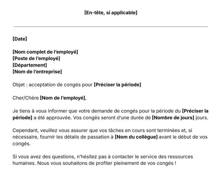 Modèle de lettre d’acceptation de congés