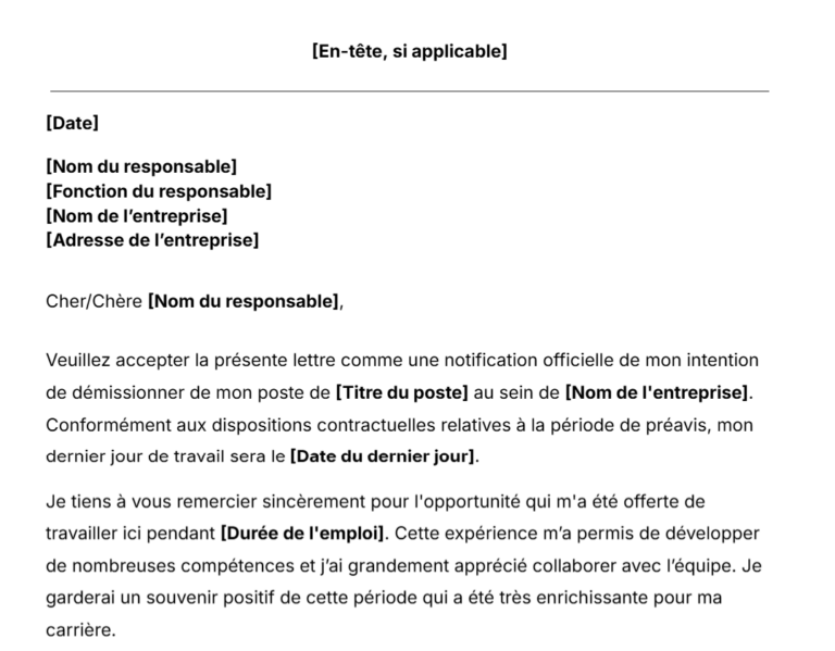 Modèle de lettre de démission. Téléchargez dès maintenant.