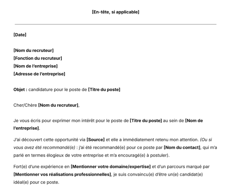 Modèle de lettre de motivation. Téléchargez dès maintenant.