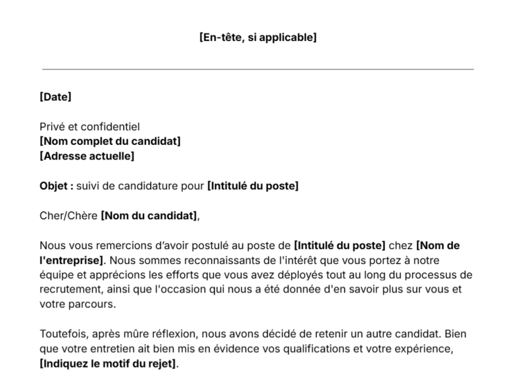 Modèle de lettre de refus de candidature. Téléchargez dès maintenant.