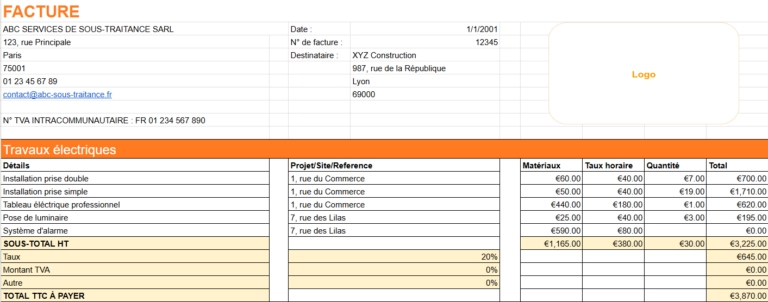 Modèle de facture de sous-traitance. Téléchargez dès maintenant.