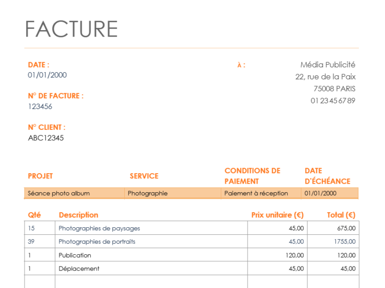 Modèle de facture de freelance. Téléchargez dès maintenant.