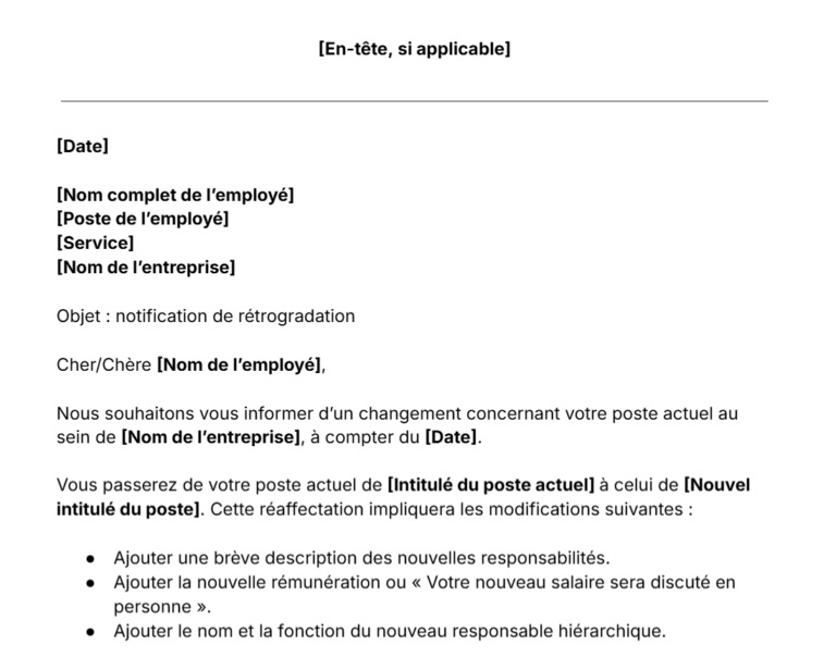 Modèle de lettre de notification de rétrogradation