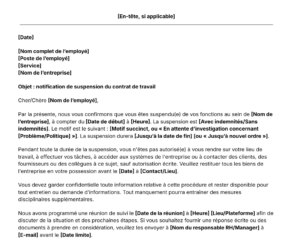 Modèle gratuit de lettre de suspension du contrat de travail par l'employeur. Téléchargez dès maintenant.