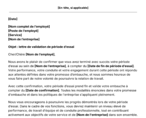 Modèle gratuit de lettre de validation de période d'essai. Téléchargez dès maintenant.