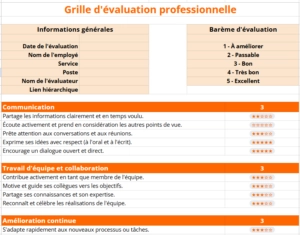 Modèle gratuit de grille d'évaluation des compétences professionnelles. Téléchargez dès maintenant.
