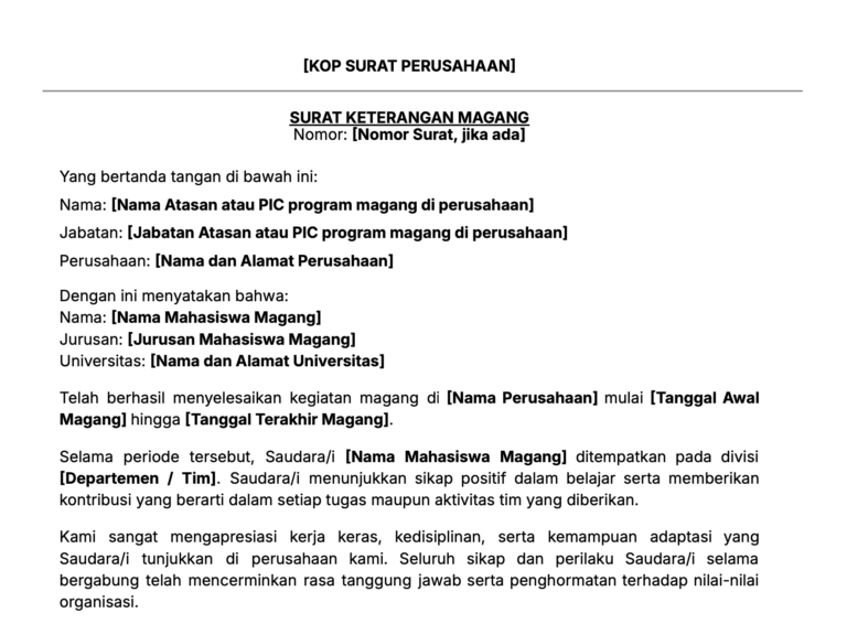 Contoh surat keterangan selesai magang dari perusahaan. Unduh gratis di sini!