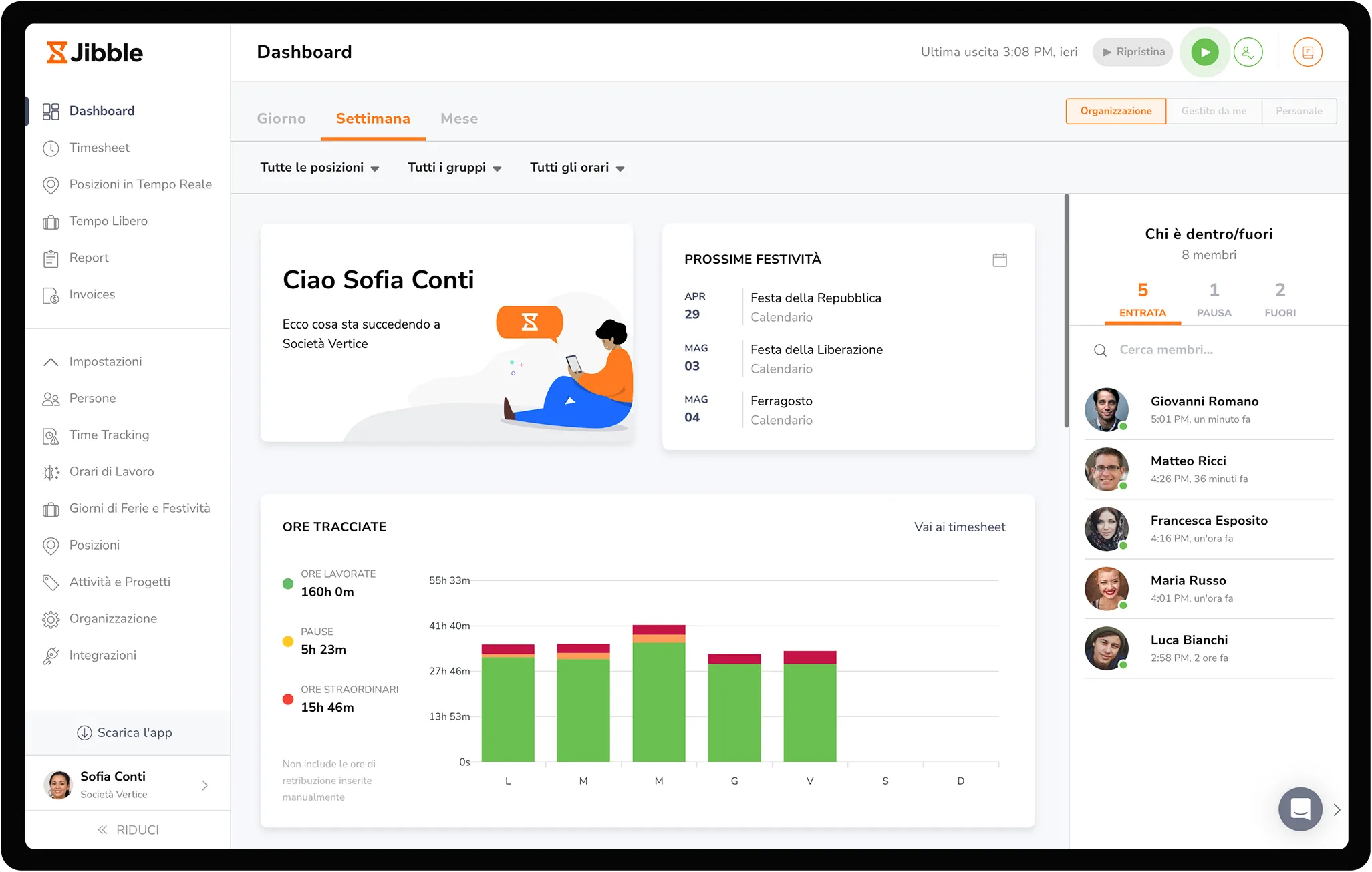 Mi piace il fatto che si possano monitorare le pause, gli orari e gli straordinari giornalieri e che sia facilissimo... nel complesso è stata un’ottima esperienza.