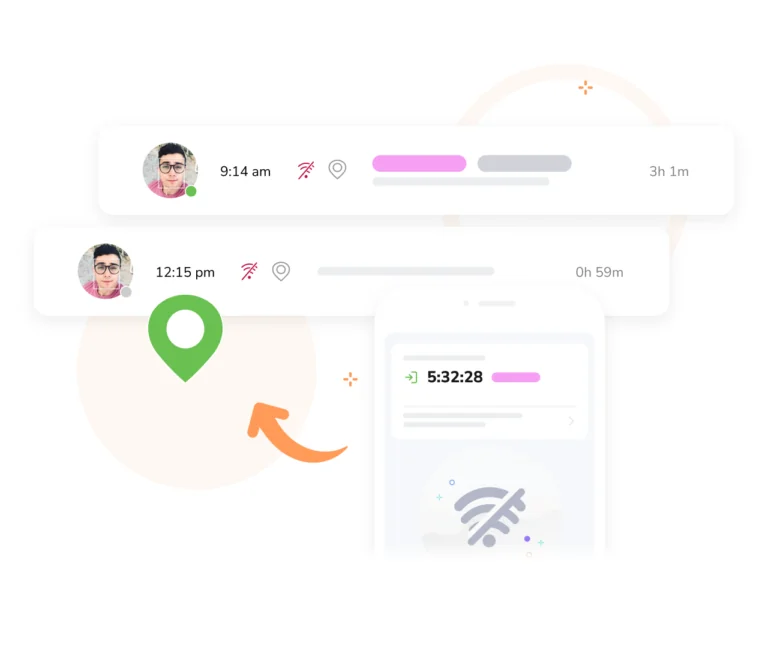 Grazie alla localizzazione in tempo reale, puoi conoscere in tempo reale gli spostamenti del tuo team durante l’orario di lavoro. Che tu sia al telefono o alla tua scrivania, Jibble fornisce istantaneamente la visione di dove si trovano i tuoi dipendenti e a cosa stanno lavorando.