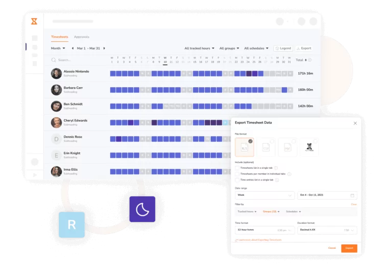 Calcola le ore di lavoro del personale con i nostri timesheet giornalieri, settimanali e mensili. Utilizza i nostri molteplici filtri per identificare gli schemi e apportare miglioramenti.