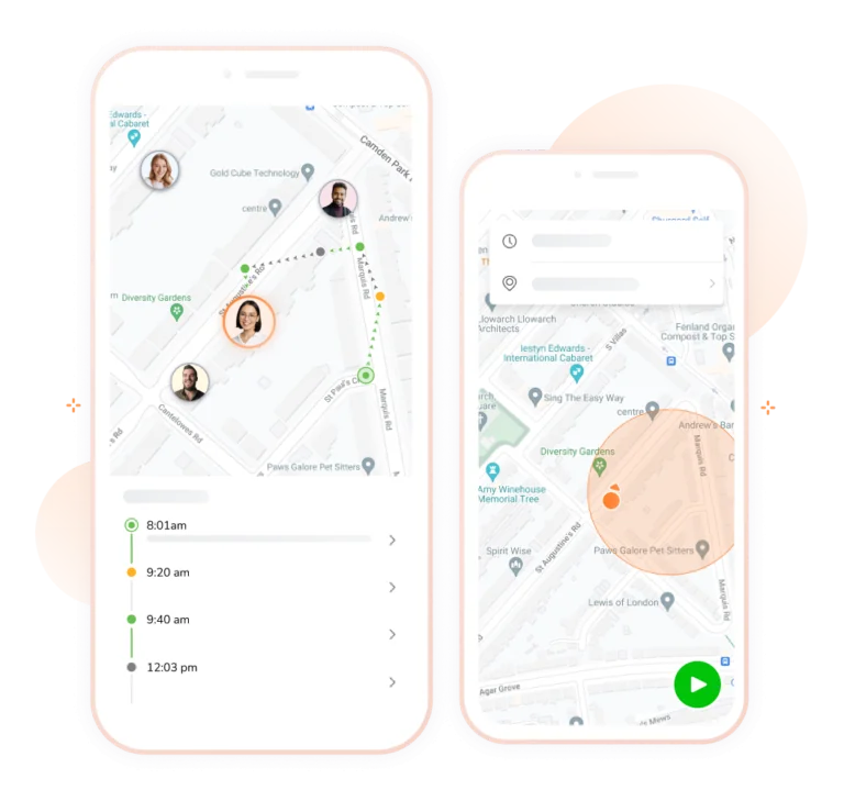 Localizzazione GPSCon la funzione di localizzazione GPS in tempo reale di Jibble, puoi visualizzare facilmente gli itinerari percorsi dagli autisti, comprese le timbrature passate. Accedi ai dettagli delle loro timbrature e a una timeline che mostra le posizioni registrate durante il loro viaggio.